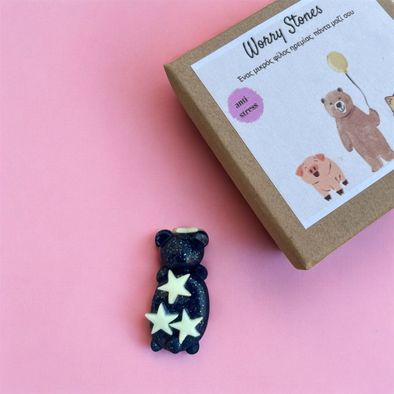 Χαριτωμένα αρκουδάκια σε galaxy αποχρώσεις, με φωσφορίζουσες λεπτομέρειες που λάμπουν στο σκοτάδι ✨🐻🌙. Το πιο cute και μαγικό αξεσουάρ για όσους αγαπούν τα αστέρια και τα όνειρα!